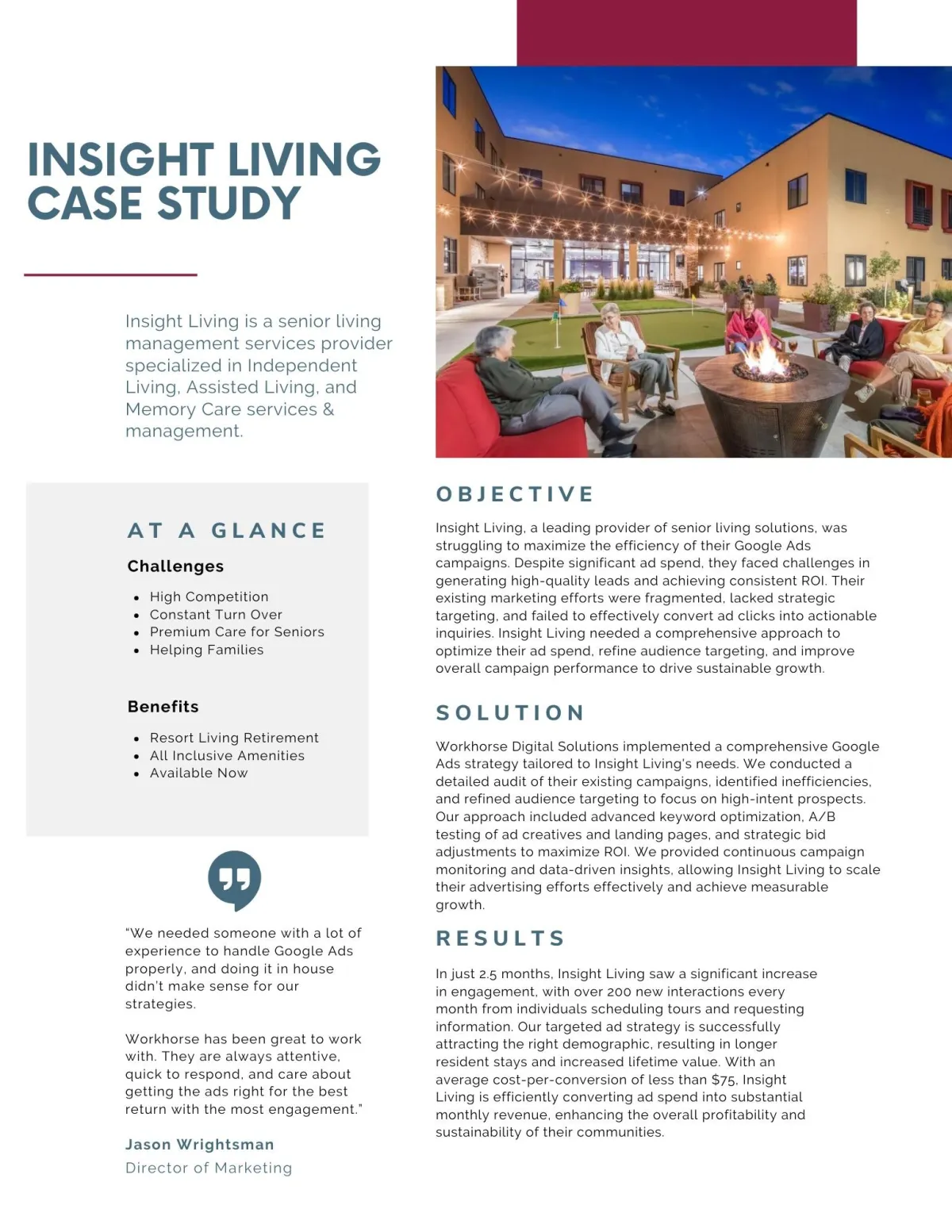 We've been working with Workhorse Digital Solutions for a few months now. We activated Google Ads in a slower season, and within a few weeks we started seeing steady results on the audience we were trying to reach. Great company to hire to help grow your business.